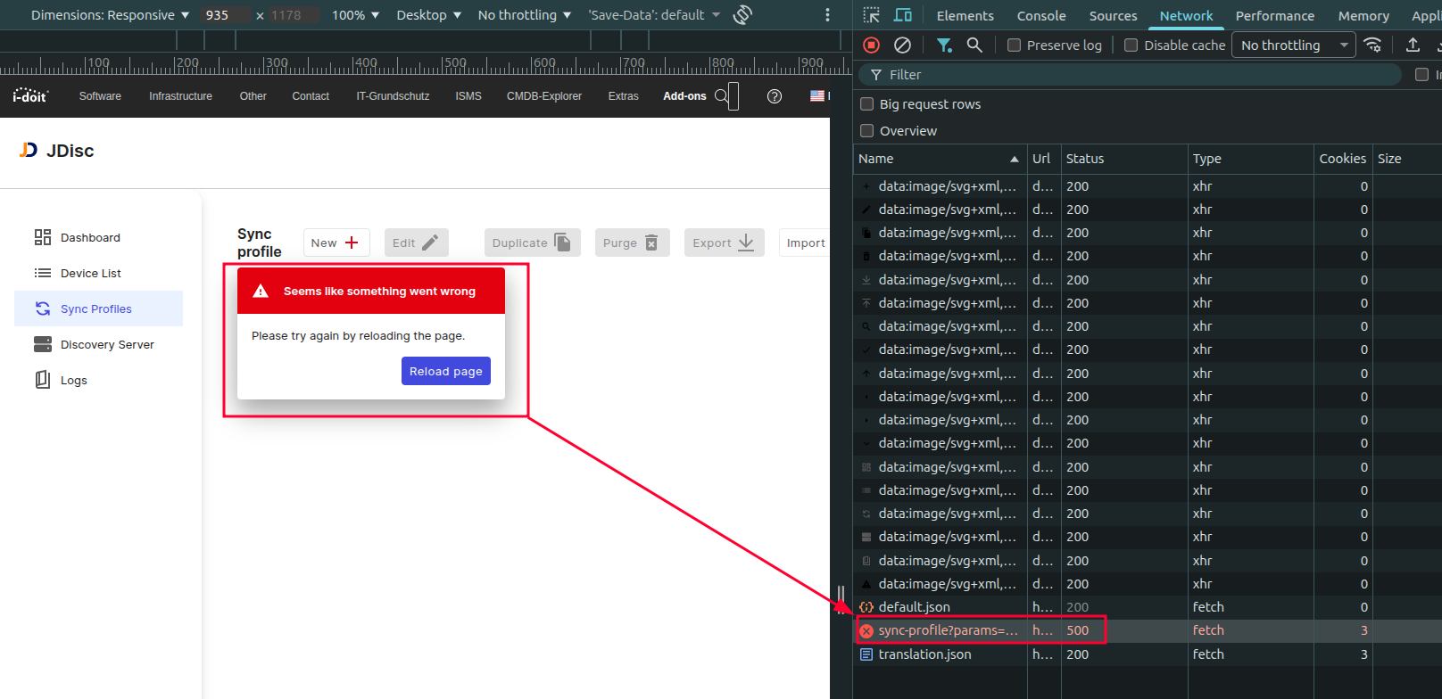 #5 /var/www/ht...', referer: http://i-doit/synetics_jdisc/iframe/sync-profile